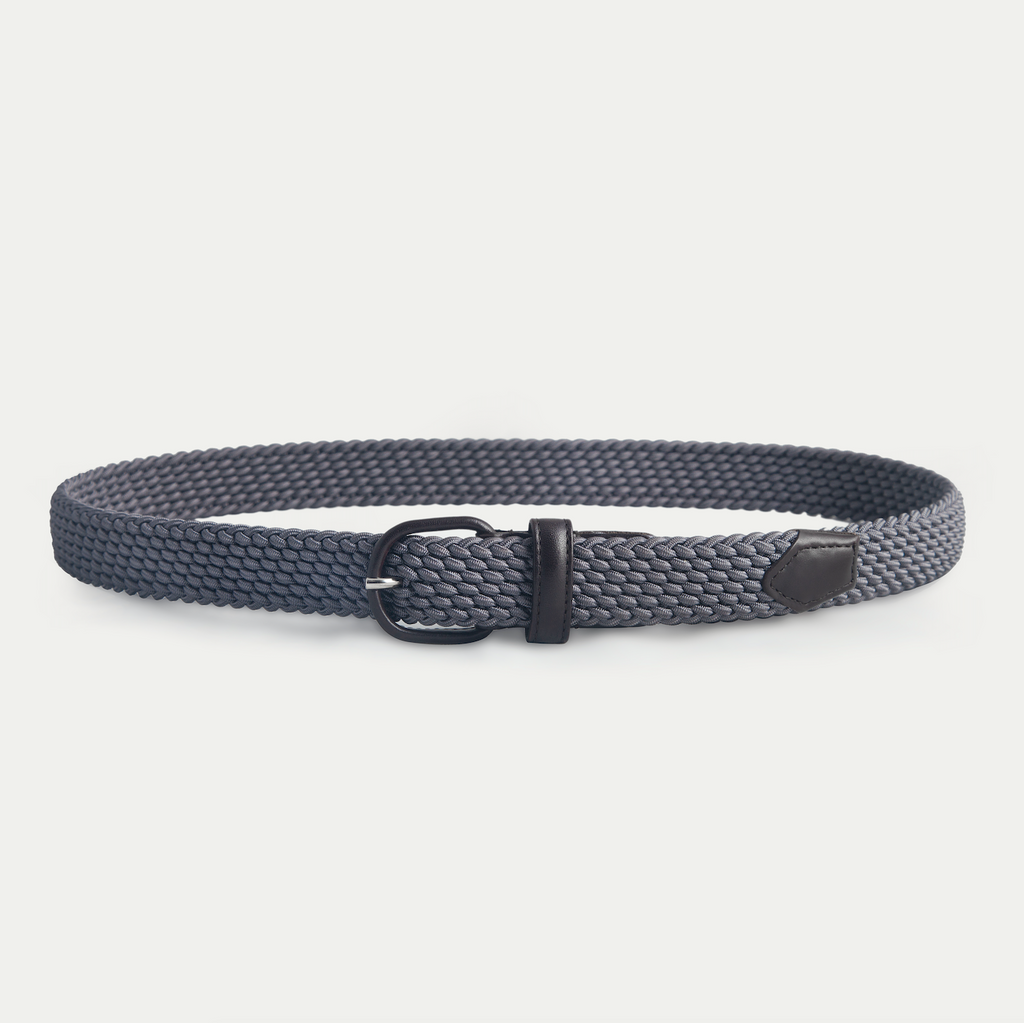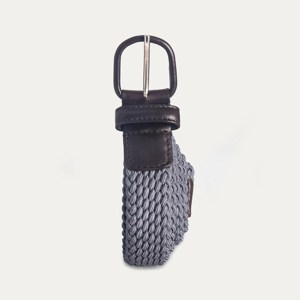 Bocache and Salvucci's eye for detail extends to this casual warm weather belt. Handmade and woven from a durable braided stretch textile weave, it is finished with calf leather trim to ensure that the belt's shape will hold over time. It can fasten at just about any point, and works best with shorts, chinos and jeans.