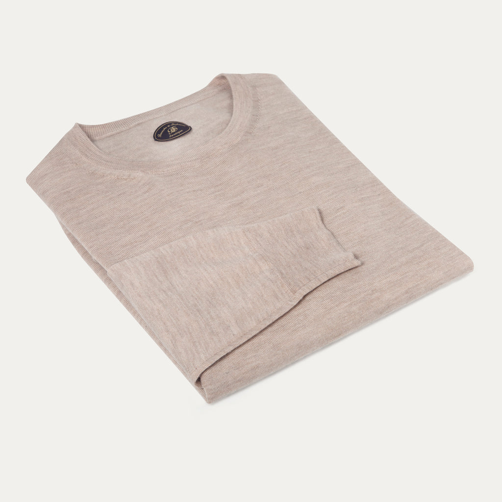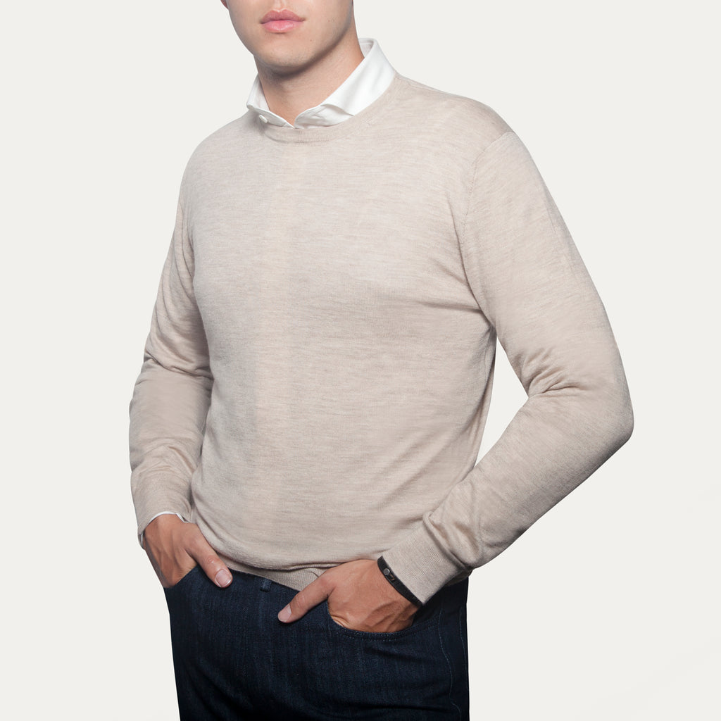 Created using the finest Scottish cashmere that has been spun in Italy, our classic crewneck sweater is finished with a finely knit collar, waistband, and cuff to ensure its longterm structural integrity. Presented in classic colors, our sweater is the ideal shape and weight for layering over shirts and beneath fitted jackets and blazers.